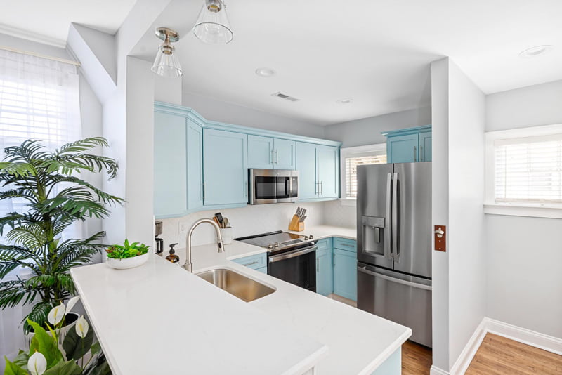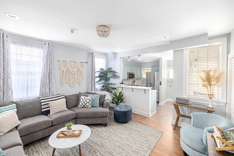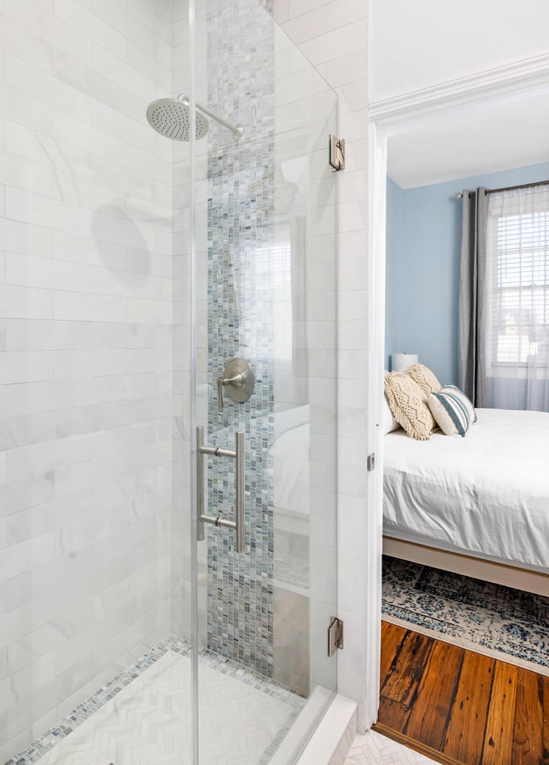 This 4 month, $450,000 renovation transformed a downtown Charleston run-down college rental property into a luxury short-term rental palace, consisting of 7 bedrooms, 6 baths, 3 kitchens, and a monstrous back patio. Upgrades included structural improvements, new TPO roofing, Ipe decking and stairs, job-built walk-in showers with floor-to-ceiling tile, historic heart pine floor resurfacing, new cabinetry, and countertops, HVAC, plumbing, and electrical upgrades, and a total repaint.